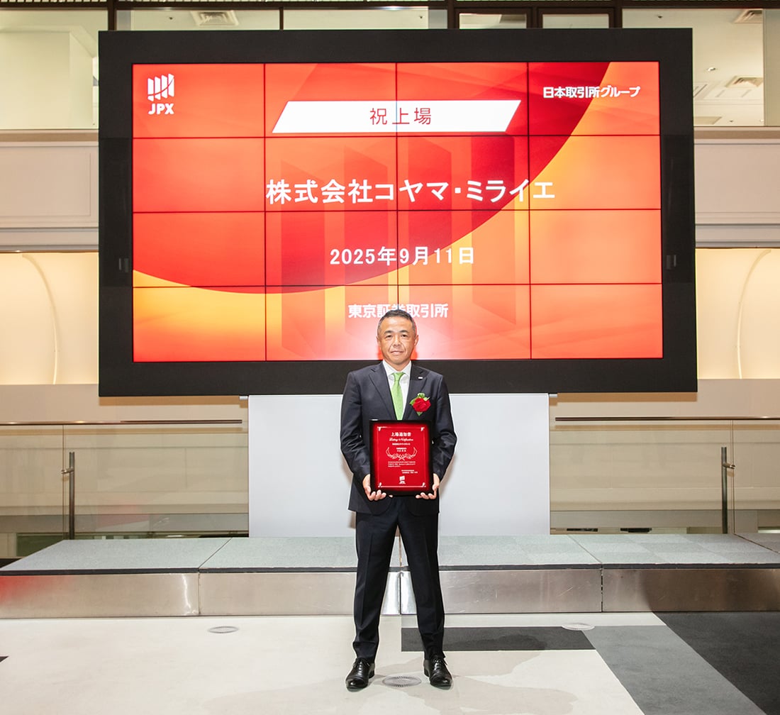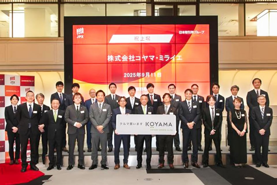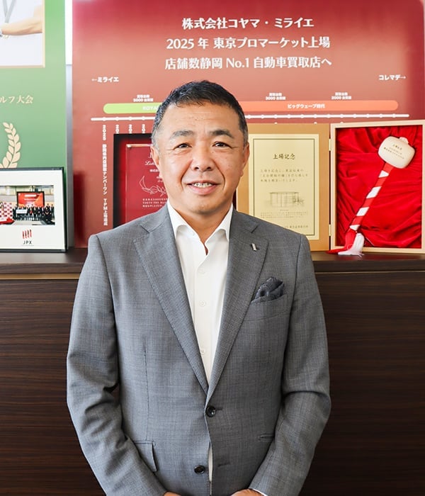 2025年9月11日、中古車の買い取りを主な事業とする株式会社コヤマ・ミライエが東証のプロ投資家向け株式市場「東京プロマーケット(TPM)」に上場しました。名南M&Aは、TPMへの上場審査業務を担うJ-Adviserとして上場を支援。コヤマ・ミライエの代表取締役CEOである小山 武氏に、上場までの道のりや現在の心境についてお話を伺いました。